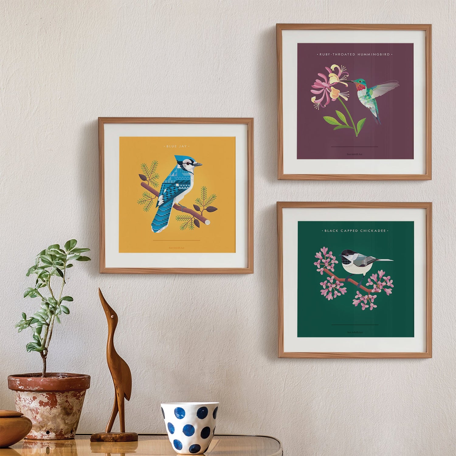 Modern geometric takes on classic American birds—bold shapes, striking color palettes, and...