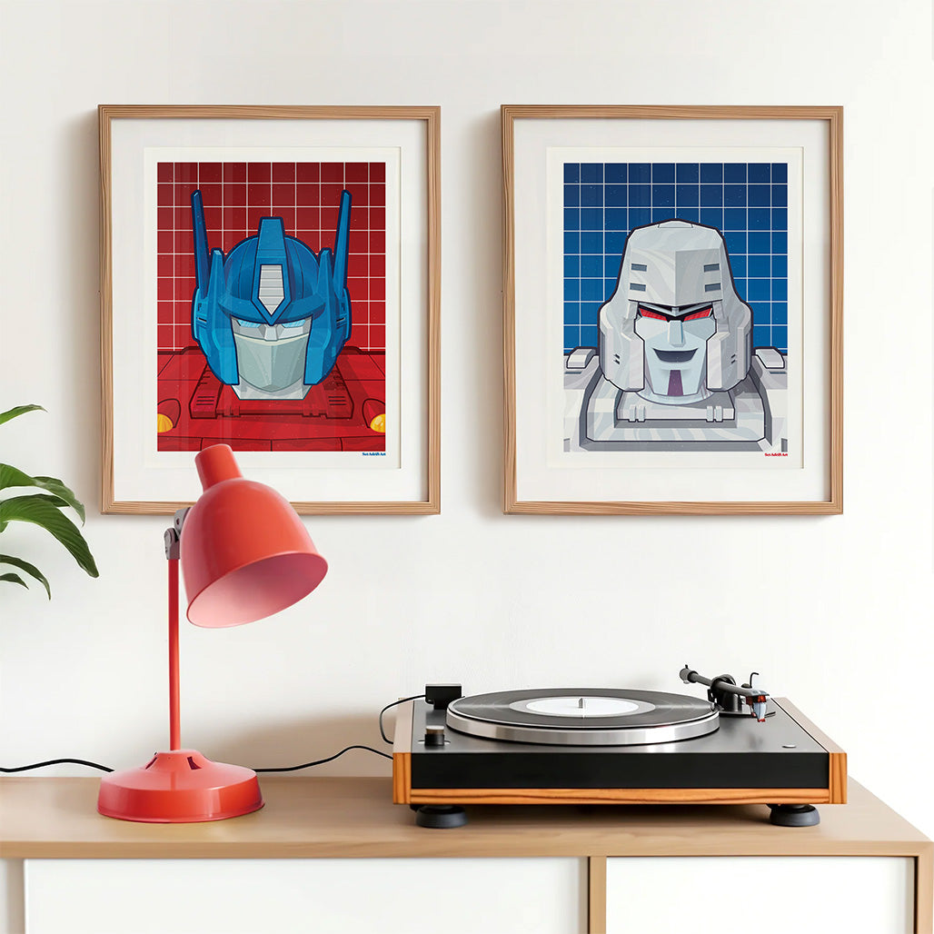 Relive the battle for Cybertron with these bold, nostalgic art prints of Optimus Prime and Megatron, inspired by the classic 1980s Transformers cartoon. Whether you’re Team Autobots or Decepticons, these vibrant illustrations are a must-have for any fan of retro animation, vintage toys, or epic robot rivalries.